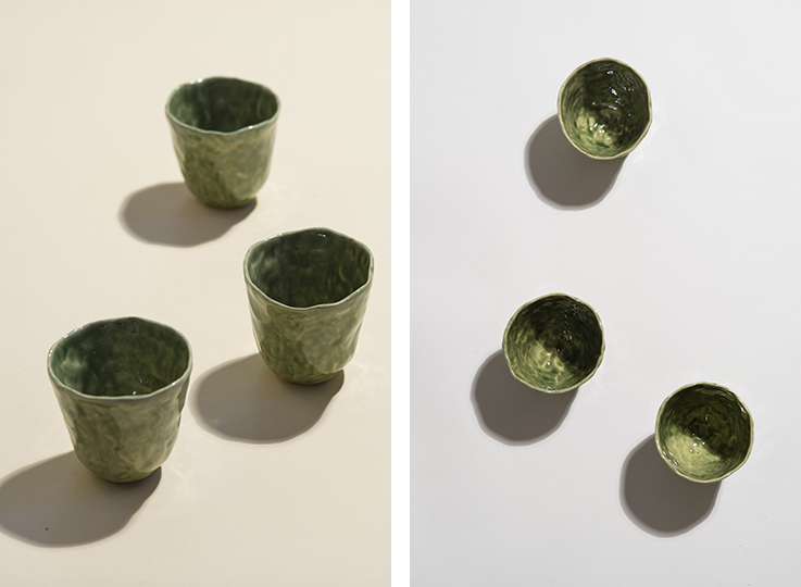 Anhänger \ kleine Körbchen ca. 3 x 2 x 2 cm, Schiffchen ca. 3.5 x 2 x 1 cm \ Steingut Ton hoch gebrannt, Baumwollfaden