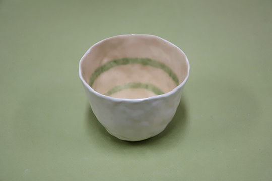 aussen weiss, innen zwei hellgrüne Ringe _ ø 9 cm / H: 7.5 cm (Abb. oben)