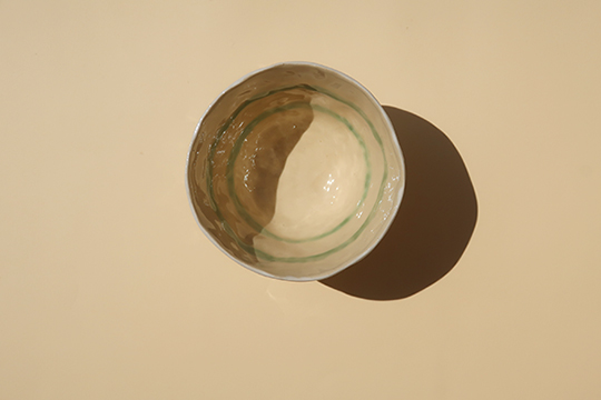 aussen weiss, innen zwei hellgrüne Ringe _ ø 11 cm / H: 6 cm (rechts im Bild)