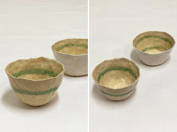 chamottierter Ton, innen und aussen je ein Ring _ ø 10 cm / H: 6.5 cm (links im Bild)