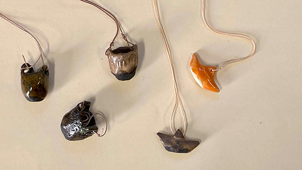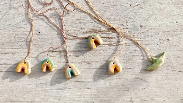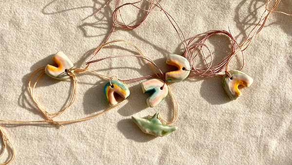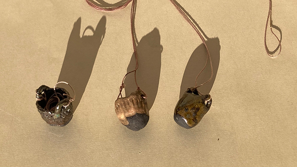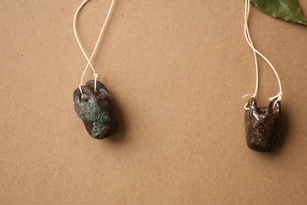 handgeformt und glasiert, die Fäden sind organisch von Hand gefärbt