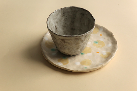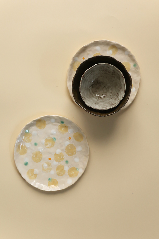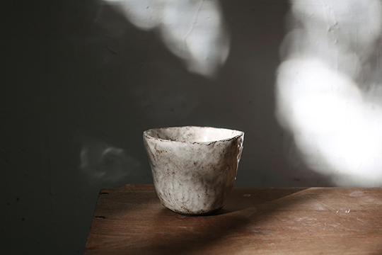 Becher, schwarzer Ton, weiss glasiert _ ø 7.5 cm / H: 6 cm
