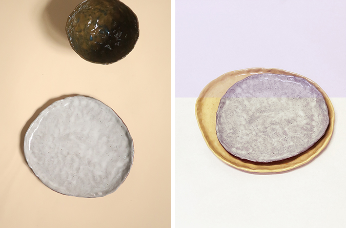 kleiner flacher Teller, weisse Glasur auf dunklem Ton _ ø 14.5 / 16 cm