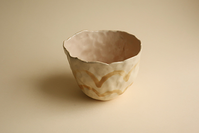 Becher / aussen zwei Blumenlinien, sandfarben, innen feines rosa _ ø 8 cm / H 6 cm _ für Eis, Kaffee, Bonbons, Pralinen, Nüsse und andere kleine Dinge _ 32 Fr.