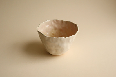 kleiner Becher / aussen verwaschenes weiss, innen rosa und sandfarben vermischt _ ø 8 cm / H 5.5 cm _ für Nüsse, Oliven, Apfelmuss, Kaffee, Schmuck oder andere Schätze _ 28 Fr.