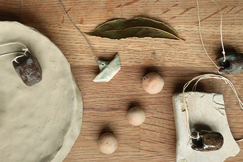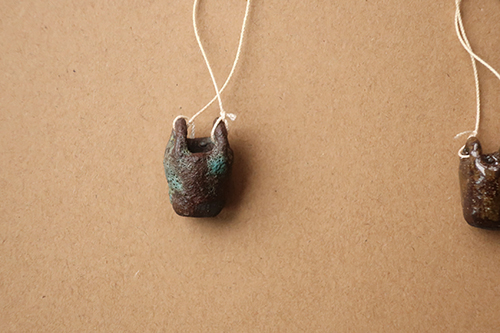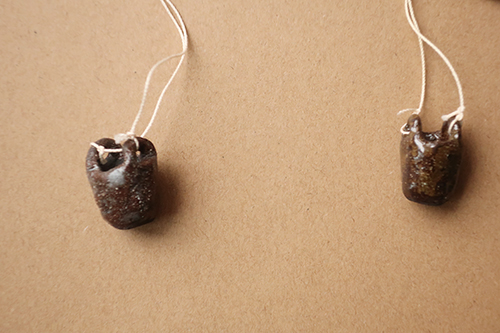 Anhänger \ kleine Körbchen ca. 3 x 2 x 2 cm, Schiffchen ca. 3.5 x 2 x 1 cm \ Steingut Ton hoch gebrannt, Baumwollfaden