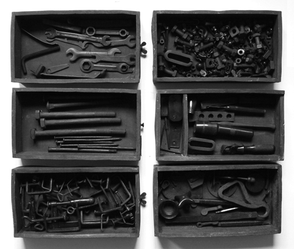 tools, casted in polyurethan. box 17.5 x 31.5 x 7 cm each